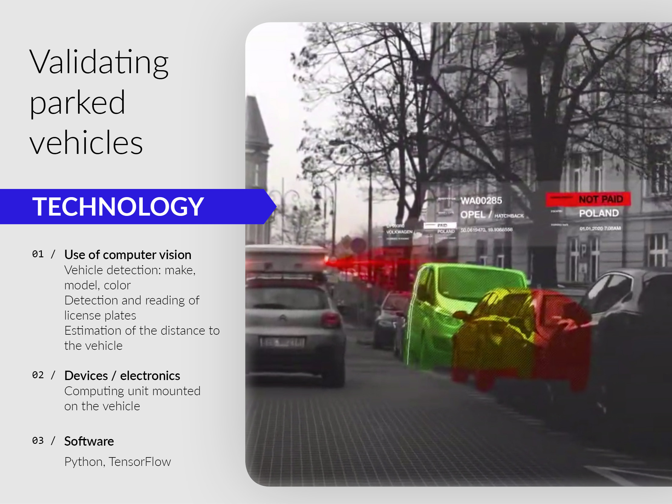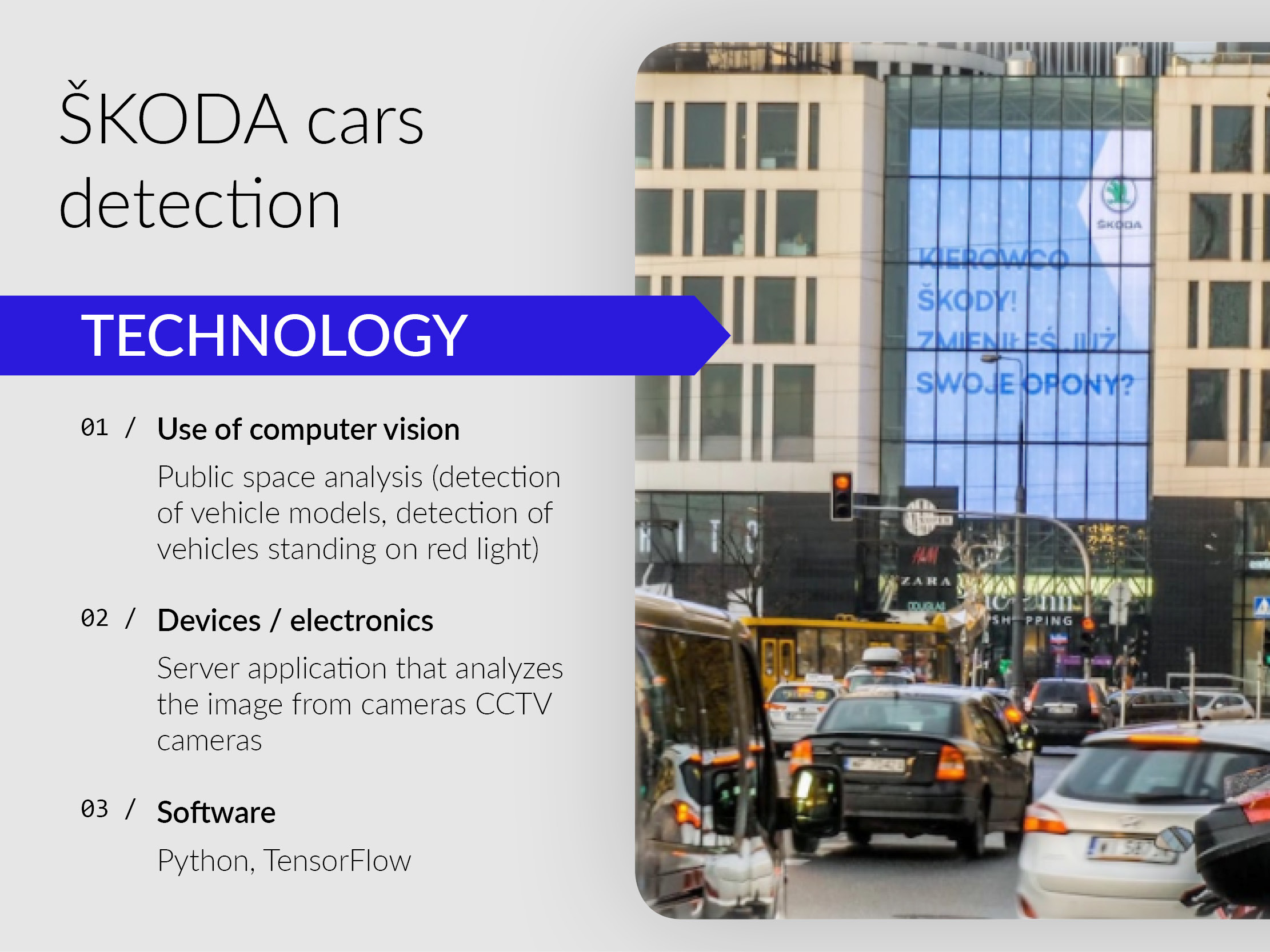- Automatyczne monitorowanie dróg (statystyki, detekcja sytuacji niebezpiecznych, odczyt tablic rejestracyjnych)